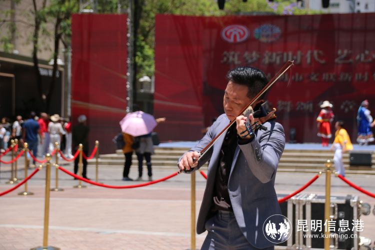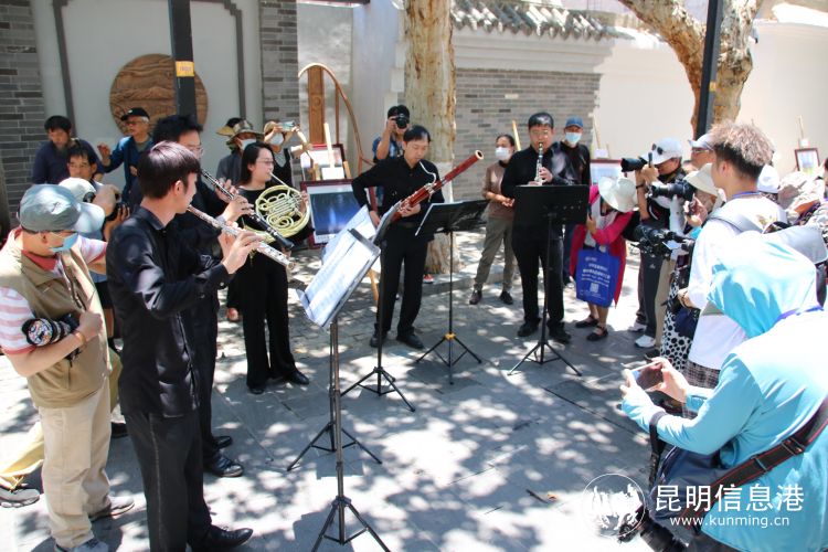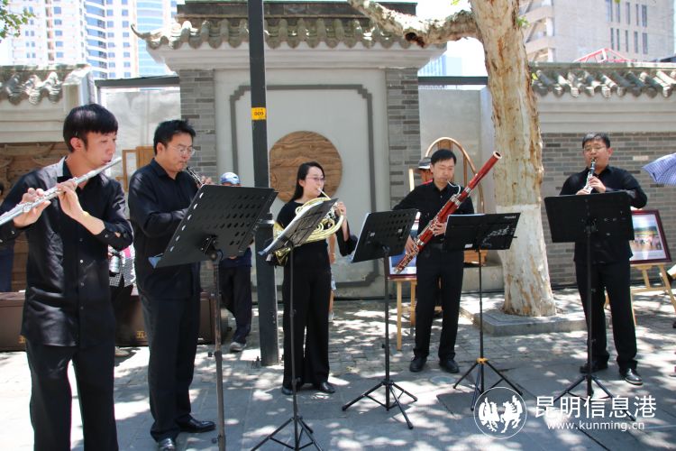 昆明信息港讯 记者甘凌菲 当交响乐走出大厅,上街玩快闪,街巷便成为了城市文化会客厅大舞台。5月27日下午,不少在南屏步行街的市民游客,都与昆明聂耳交响乐团的演出“不期而遇”,木管五重奏、电小提琴独奏,昆明文艺周用一系列“音乐邂逅”,为广大市民带来了一段别样的午后时光。