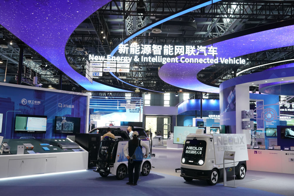 这是5月26日在中关村国家自主创新示范区展示中心拍摄的新能源智能网联汽车展区。新华社记者 任超 摄