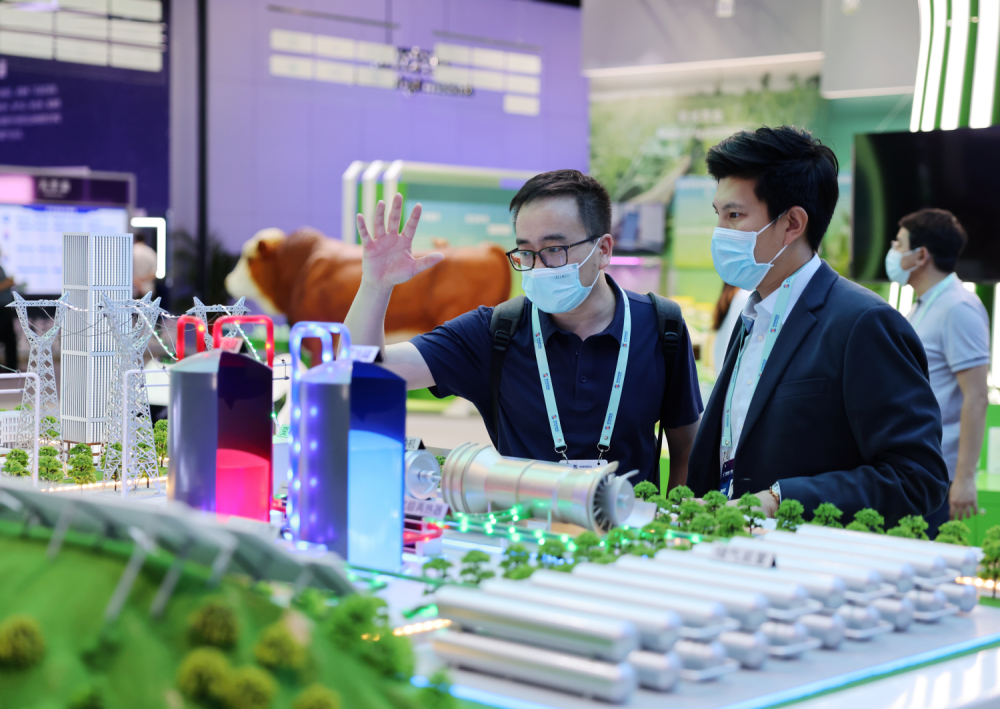 5月26日,观众在中关村国家自主创新示范区展示中心了解100MW先进压缩空气储能技术。新华社记者 张晨霖 摄