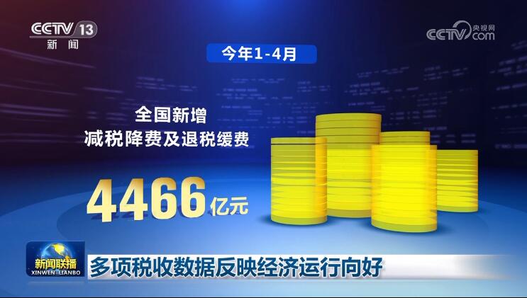 央视网消息(新闻联播):国家税务总局数据显示,今年1—4月,全国新增减税降费及退税缓费4689亿元。分经济类型看,包括民营企业和个体经营户在内的民营经济纳税人缴费人新增减税降费及退税缓费超过3393亿元,占比超七成,受益最大。