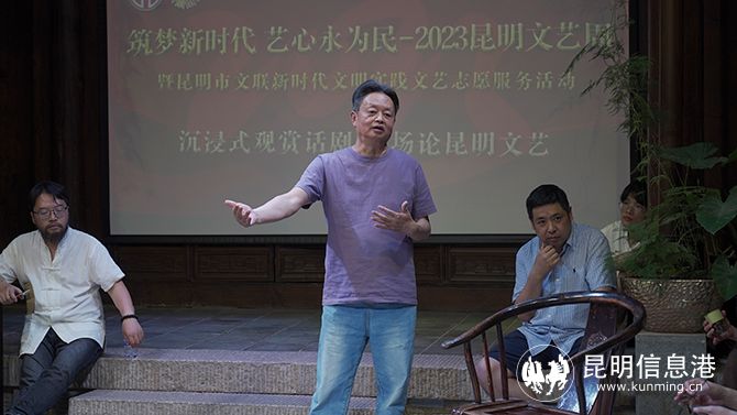 (昆明市文艺评论家协会主席冉隆中分享观剧感受。记者孙红亮摄)