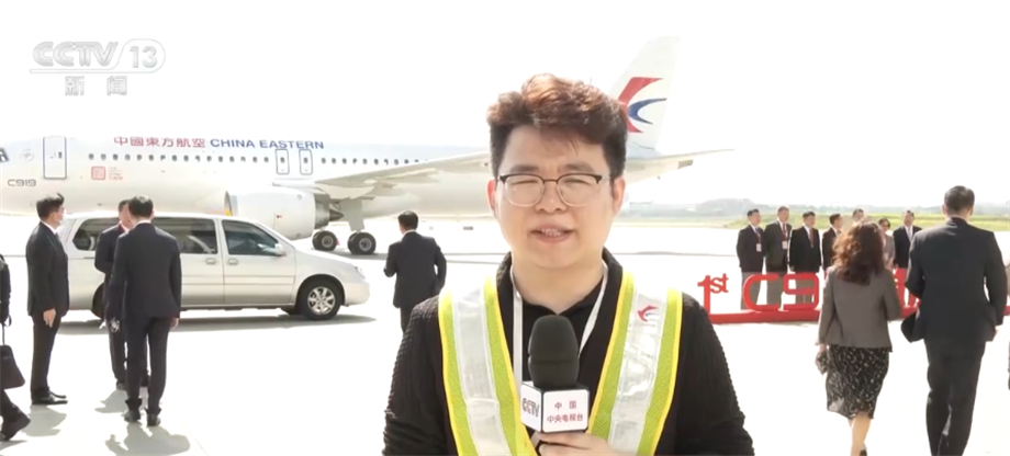 总台央视记者 王善涛:这里是上海虹桥国际机场,中国商飞交付的全球首架C919大型客机将从这里起飞,有130多名乘客将率先乘坐体验国产大飞机。