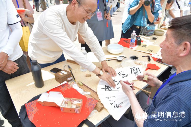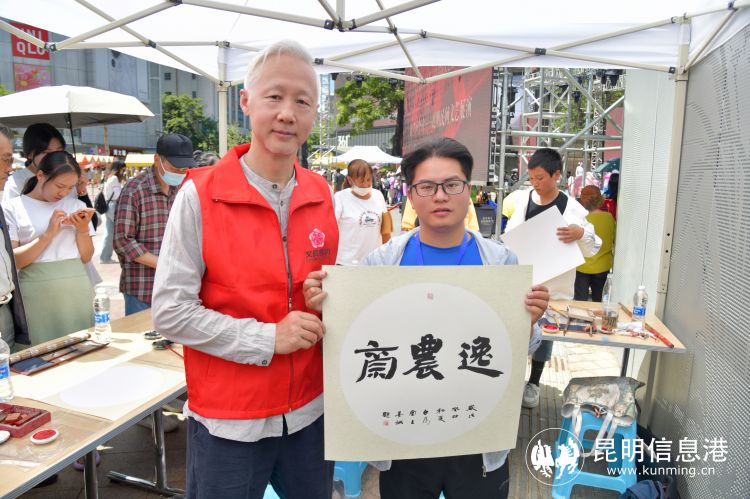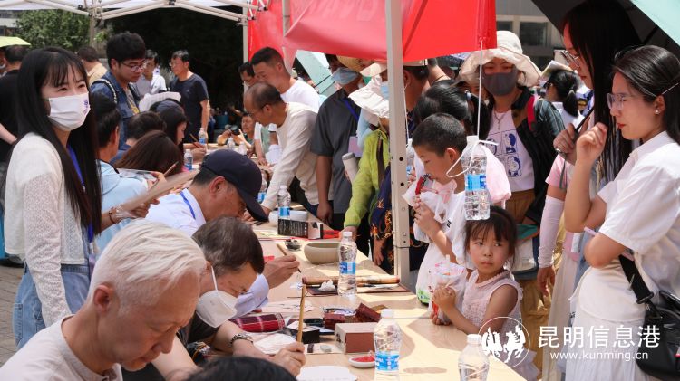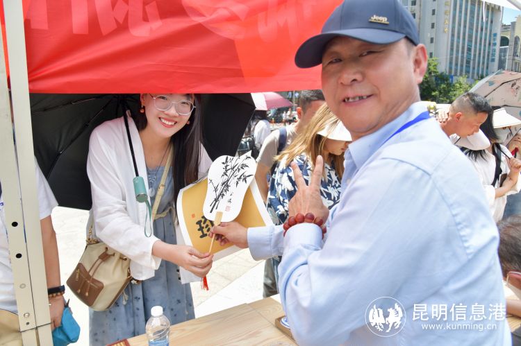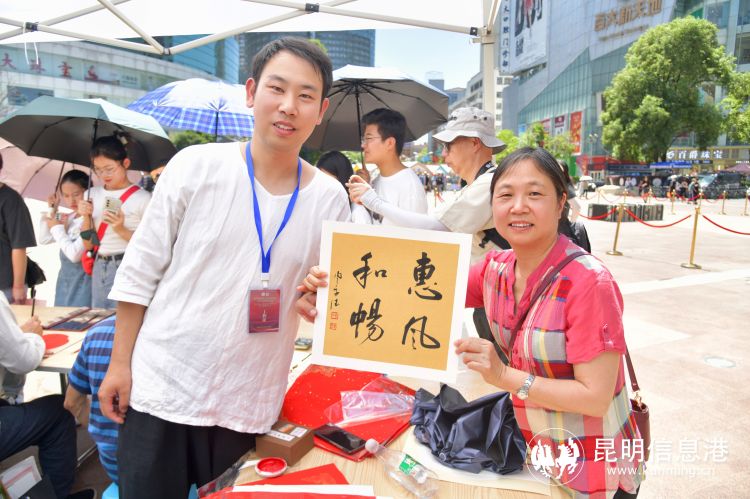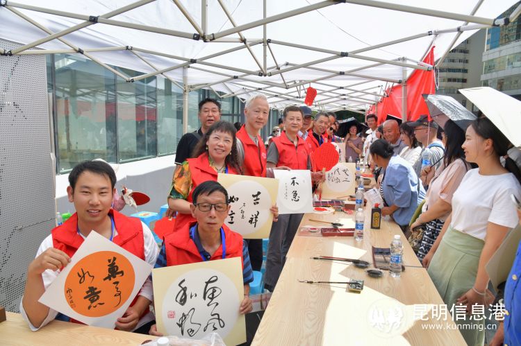 “筑梦新时代 艺心永为民——2023昆明文艺周”暨昆明市文联新时代文明实践文艺志愿服务活动“书画润心”惠民活动,5月27日在南屏步行街广场举行,本次惠民活动由昆明书法家协会、昆明美术家协会共同承办,旨在引导广大文艺工作者面向基层、服务群众,以文艺的形式弘扬传统文化自信,提升人民群众的文化获得感、幸福感。