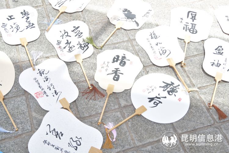 “为了更好地丰富2023文艺周,昆明书法家协会精心准备了本次活动,挑选了覆盖全年龄段的书法家投身于本次活动中。”昆明书法家协会主席李波表示,本次活动既要使艺术家面向基层、服务群众,以文艺的形式弘扬传统文化自信,还要使得人民群众在活动中提升文化获得感与幸福感。“抢手”的团扇便是本次活动中的一大亮点,协会在筹备之初,便考虑到了盛夏天气炎热,将书法作品赋在团扇上,为广大群众带去清凉的同时,也达到了弘扬传统文化的本意。