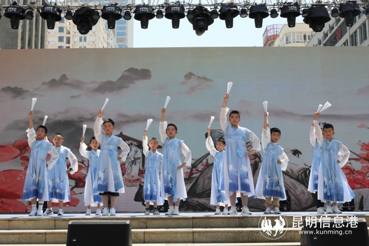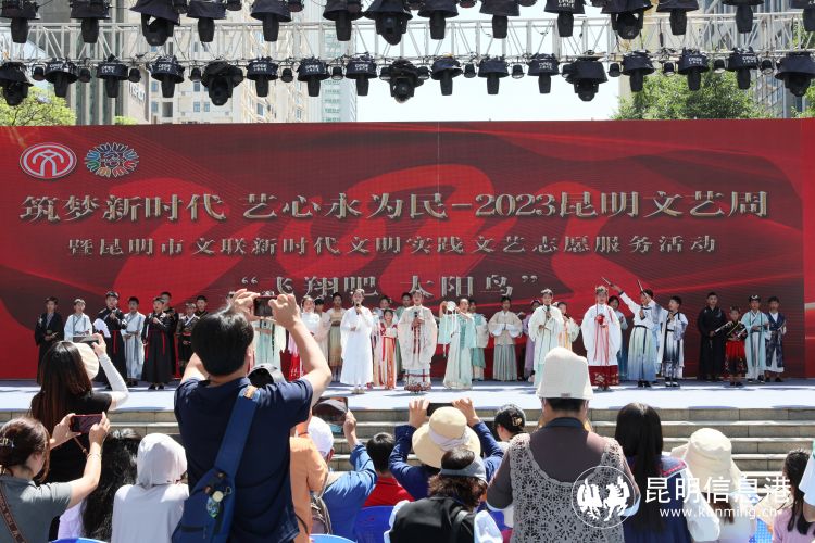 昆明信息港讯 记者王奕然 5月27日,“筑梦新时代 艺心永为民——2023昆明文艺周”暨昆明市文联新时代文明实践文艺志愿服务活动“飞翔吧 太阳鸟”诵读专场在南屏步行街广场举行,来自昆明各所学校的学生们,在周末时光为现场观众献上了一场丰富多彩、展现爱国情怀的诵读表演。