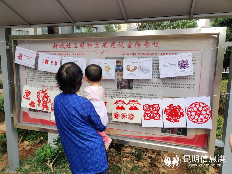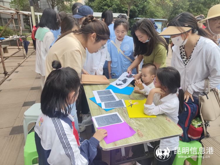 伴随着锣鼓声的响起,由昆明城市学院龙狮队为居民们带来了一场专业、精彩的,趣“耍”舞狮表演,同时,党员师生带领现场居民群众体验了传统剪纸,在剪纸活动中老师介绍了传统剪纸的由来,以现场教学的方式教会居民群众剪纸的步骤和方法,在短短的几分钟内一幅幅成品展现在居民群众眼前。