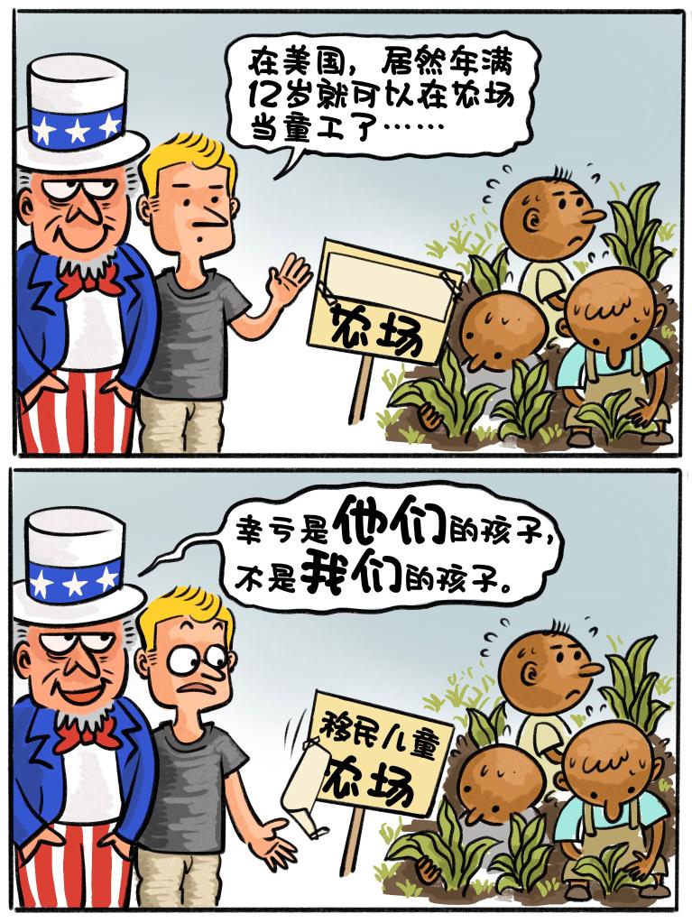 近年来,美国企业接连被曝光非法雇佣童工。与100多年前不同的是,如今的受害者大多是来自拉美、非洲等地区贫困国家的移民儿童。美国一些非法雇主与政客相互勾结,放宽法律限制、弱化制度执行、纵容人贩集团,把儿童当作“交易商品”和“牟利工具”,制造出一条黑色利益链,充分暴露出美国对待人权问题的自私和伪善。
