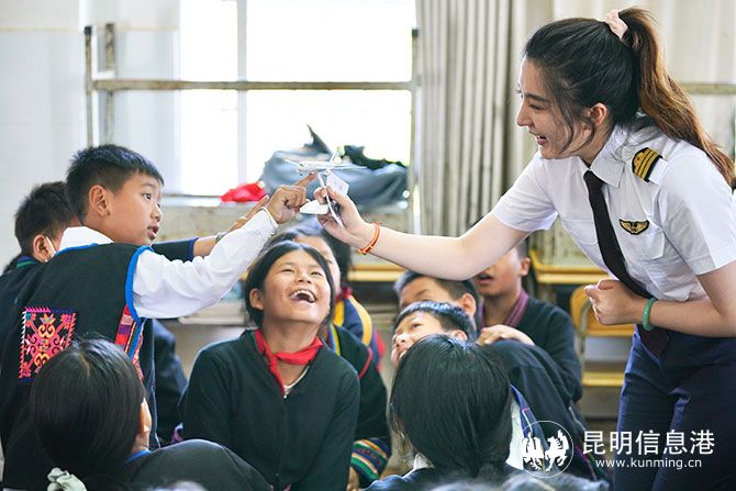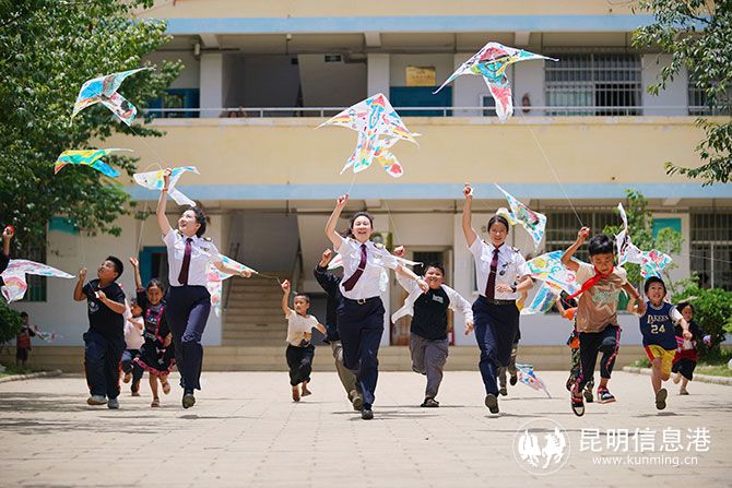 东航云南“燕锦”女飞行员示范组与云南边境小学共度“六一”。供图