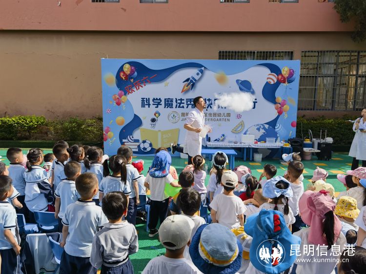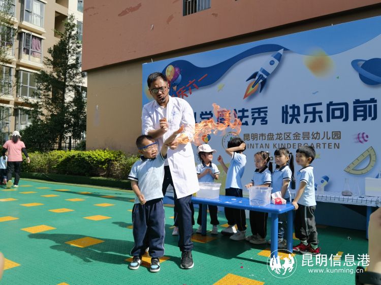 昆明信息港讯 记者王素晶 为开阔幼儿视野,激发幼儿爱科学、学科学的兴趣,体验科学的神奇与奥妙,培养学生创新创作能力和意识,提高孩子们的科学素养。“六一”国际儿童节当天,昆明市盘龙区金昙幼儿园举行“科学魔法秀 快乐向前行 ”体验科学乐趣活动。