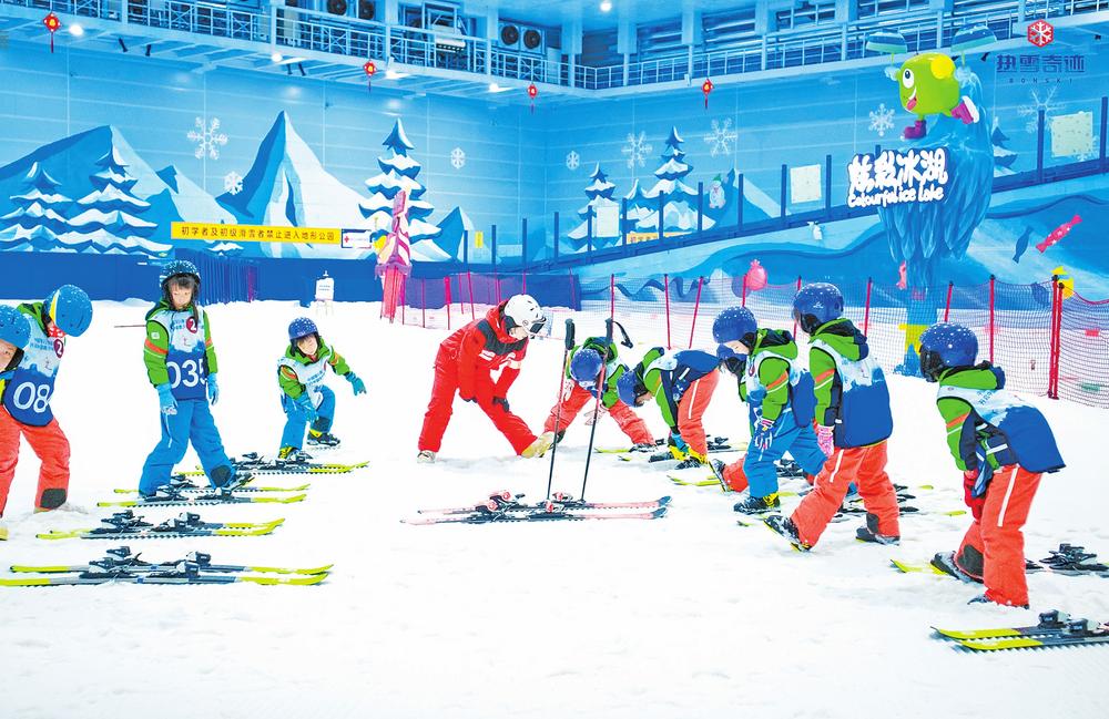 少年儿童在昆明热雪奇迹滑雪场体验冰雪运动乐趣。 本报记者 王毅 摄