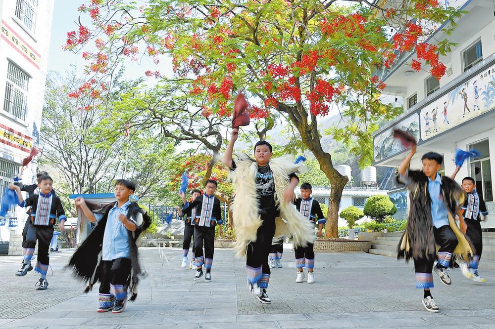 南涧彝族自治县公郎镇落底河小学组织彝族打歌表演。 本报通讯员 适志宏 摄