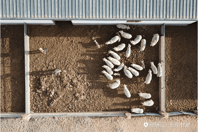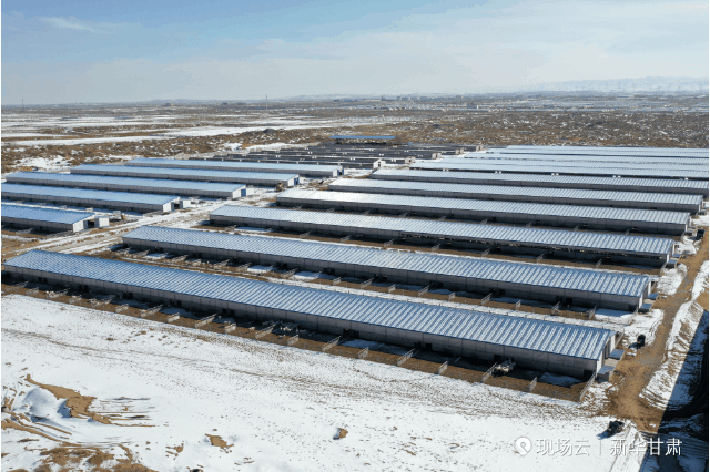 在古浪县北部的一片荒漠中,醒目的饲草种植带与养殖暖棚区错落分布,产业规模日益成型。