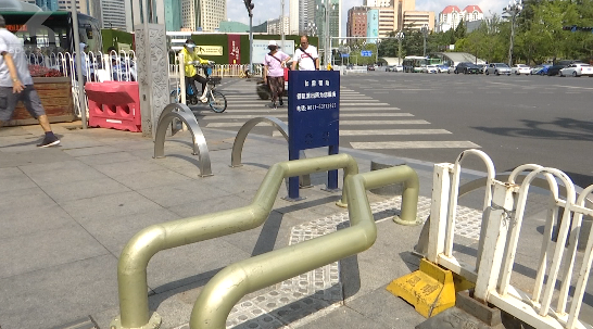 近日,有市民反映称,金格百货中心店北门附近的四个人行道进出口,被设置了多个隔离栏和隔离墩,给部分行人带来不便。