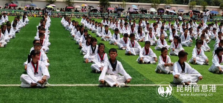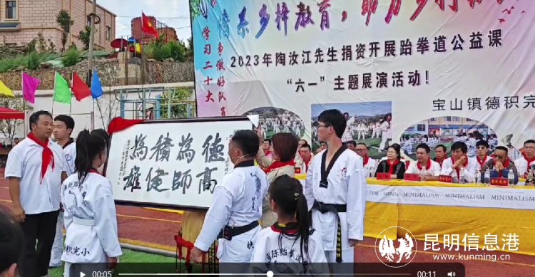 昆明信息港讯 记者戴兴 情系乡梓教育,助力乡村振兴。6月2日,宣威市德积完小小学生们借六一节日之际,用汗水铸就自信,给大家展示了他们将近一年刻苦训练的学习成果,呈上一台隆重的460人的跆拳道团体架型表演盛宴。