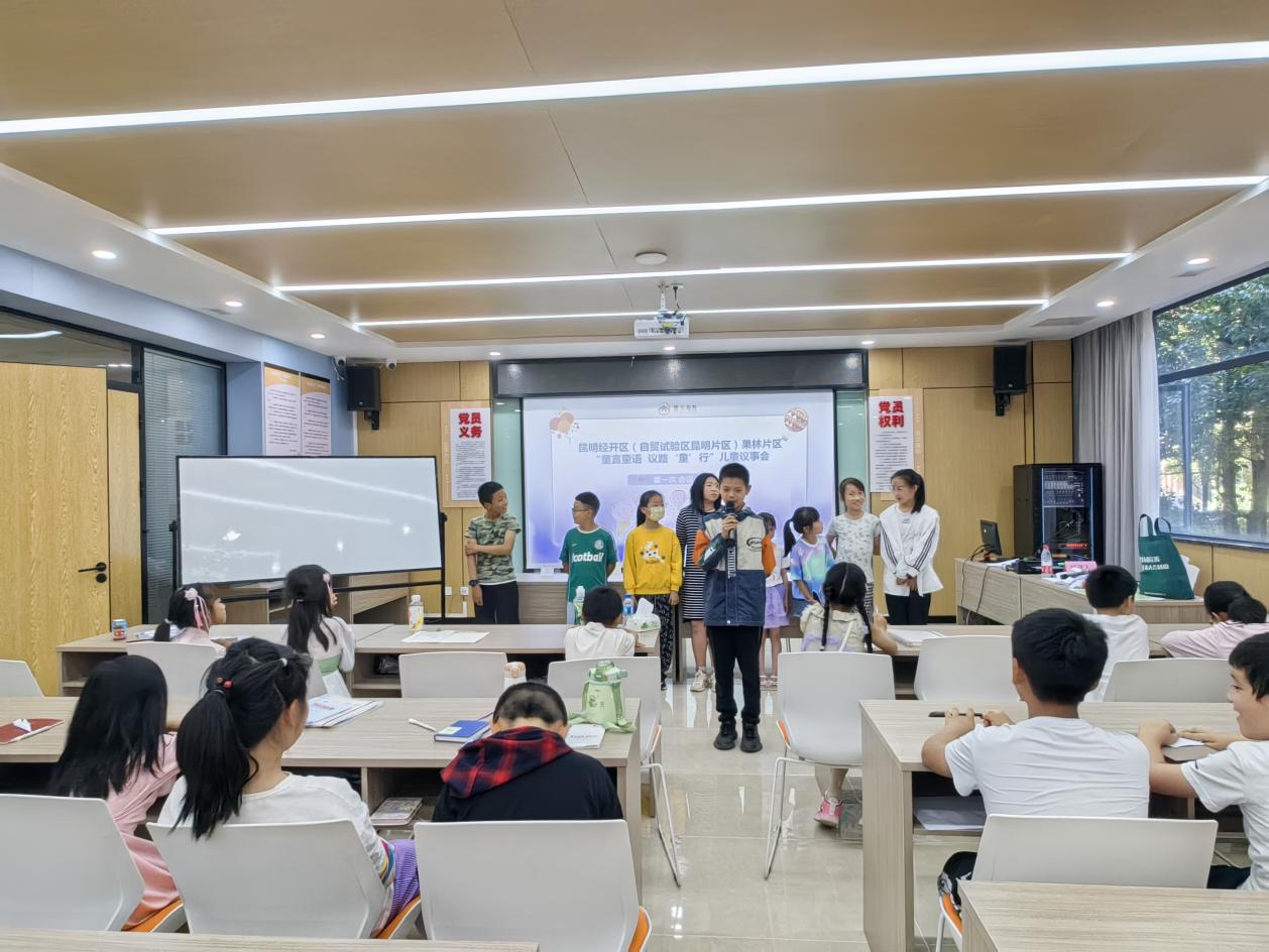 昆明信息港讯 记者杨雨 6月4日下午,昆明经开区(自贸试验区昆明片区)果林片区第一次儿童议事会在果林社区居民委员会召开,议事会通过首批55名议事员们竞选投票,选举预备组长3名,在指导员的协助下带队参观了昆明经开区首个儿童友好交通岗亭。