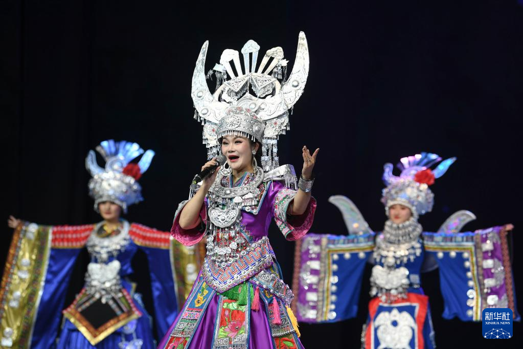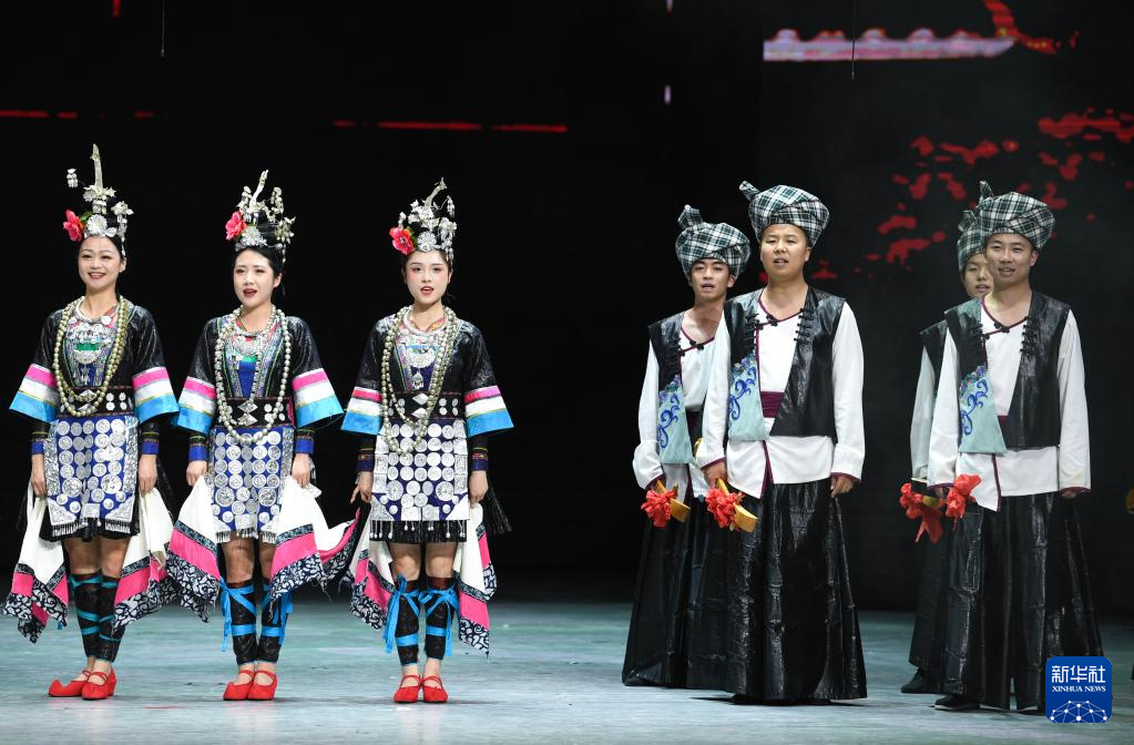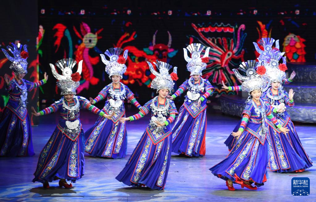 6月5日,演员在贵阳大剧院的《多彩贵州风》演出中表演节目《金绣银饰》。新华社记者 杨文斌 摄