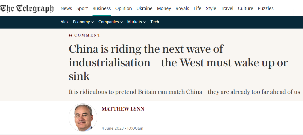 “假装英国还能赶上中国是可笑的——因为中国已经遥遥领先我们了。”英国《每日电讯报》专栏文章评论道。