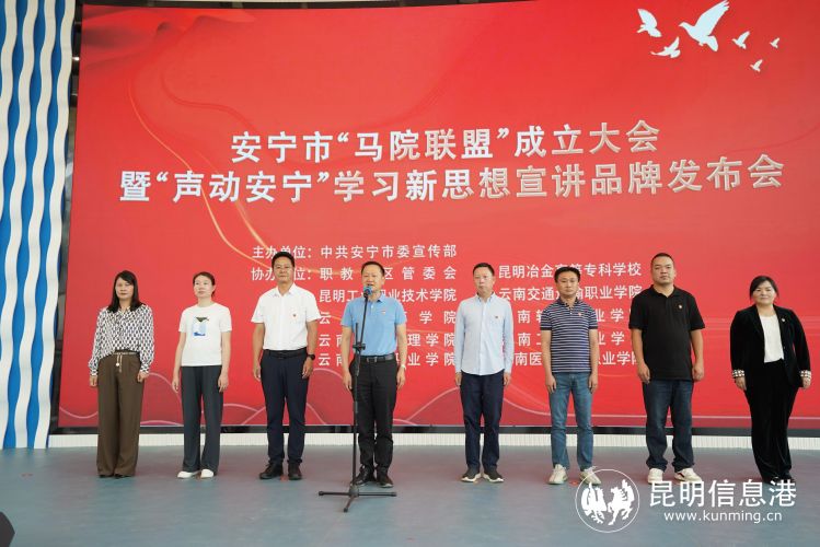 昆明信息港讯 记者杨雁 6月7日,安宁市举行“马院联盟”成立大会暨“声动安宁”学习新思想宣讲品牌发布会。安宁市委宣传部在守正基础上主动创新,打破校地、行业壁垒,牵头组织辖区9所驻市高校马克思主义学院共驻共建,成立全省首家“马院联盟”。