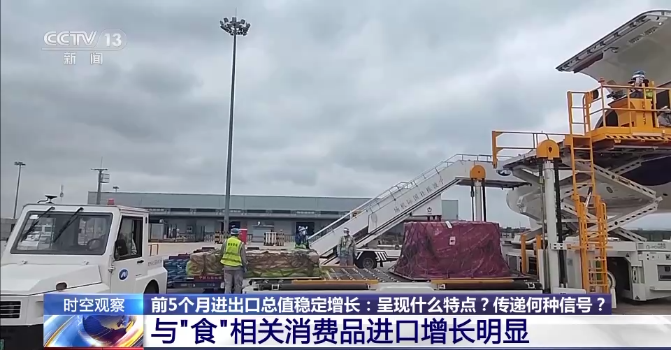 据海关统计,今年前5个月,我国除乘用车外的消费品进口6866.9亿元,增长14.3%,其中肉类、干鲜瓜果、食用水产品进口值分别增长11.1%、19.4%、32.9%。