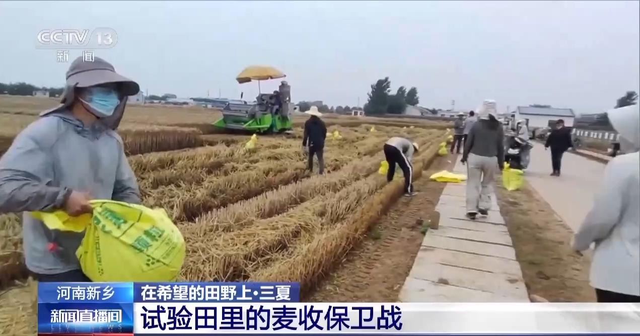 5月底,河南多地持续出现阴雨天气,给部分地区“三夏”麦收造成一定影响。为了降低天气变化带来的不利影响,河南各地提前谋划、多措并举,确保成熟的小麦能够及时收获。近日,河南新乡再次迎来阵雨,位于新乡县的中国农业科学院综合试验基地里,科研人员抢在降雨前抢收试验田里的小麦,展开了一场“试验田保卫战”。