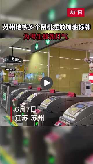 护航高考丨苏州地铁多个闸机摆放加油标牌 为考生鼓劲打气