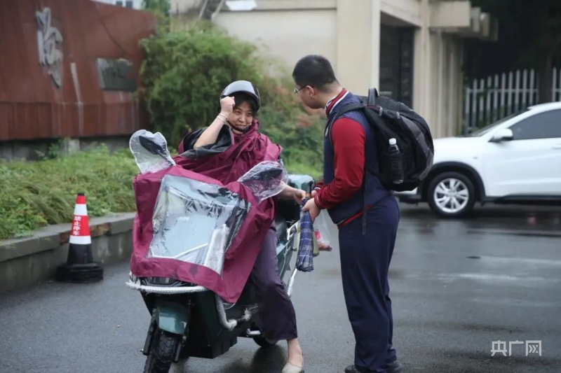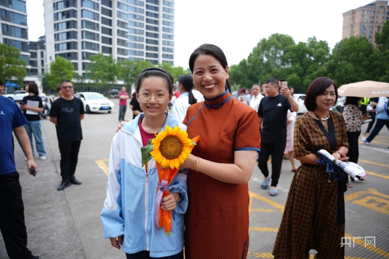 一位妈妈特地去田间摘了朵大大的向日葵,送给走出考场的孩子,祝孩子“一举得魁”!(央广网发 台州市委宣传部供图)