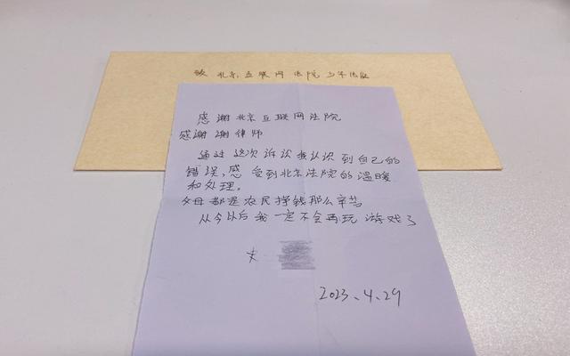 综合审判三庭(少年法庭)法官崔璐收到2位未成年当事人的感谢信,感谢信巧用七言对仗句表达了自己对北京互联网法院的感谢——“互联网上体民情,关爱有加致敬意”!