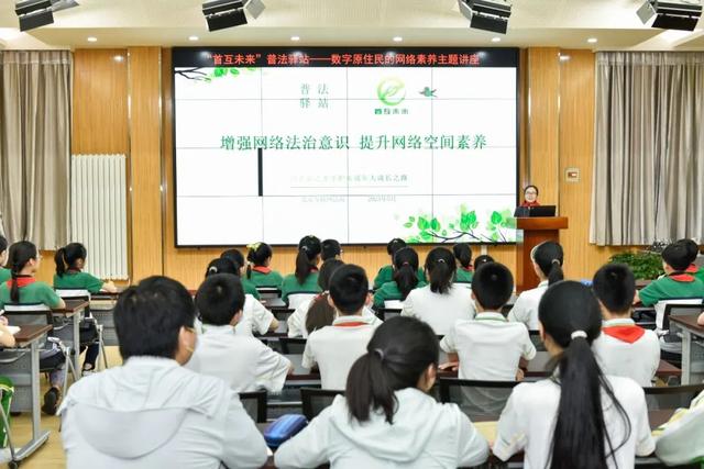 综合审判三庭(少年法庭)法官王红霞走进芳草地国际学校,开展“‘首互未来’普法驿站——数字原住民的网络素养”主题讲座。