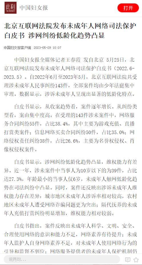 北京互联网法院发布《未成年人网络司法保护白皮书》