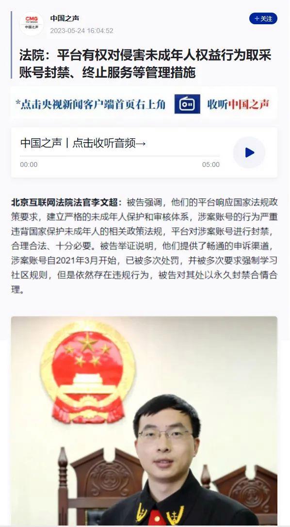 特殊全面保护!法院判定平台有权对侵害未成年人权益行为采取账号封禁、终止服务等管理措施