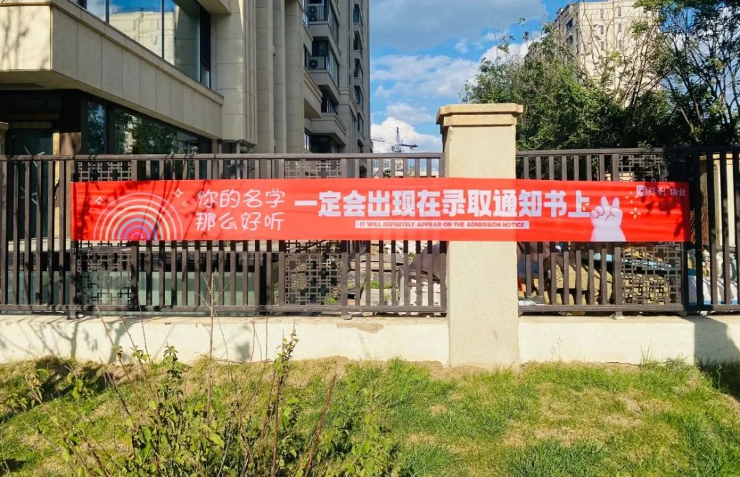 一位父亲高举的横幅戳中了很多网友:“人生考试很多,望我儿享受之。”