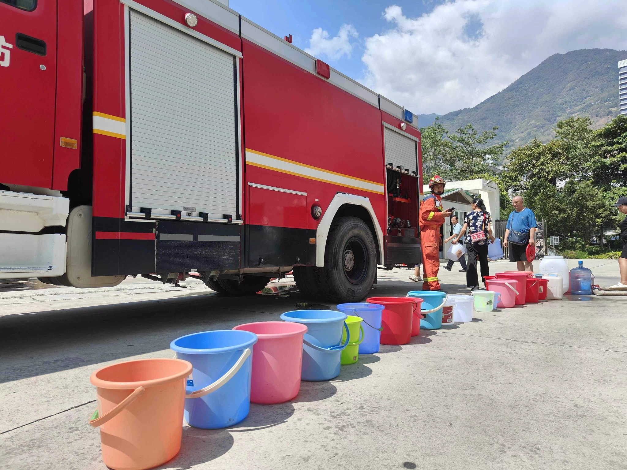 连日来,受持续高温干旱天气影响,云南省怒江傈僳族自治州泸水市自来水厂水源径流衰减,导致泸水城区部分小区停水,给群众的生产生活带来了极大不便。泸水市消防救援大队第一时间出动人员,消防员秒变“送水员”,为居民送来“及时水”。