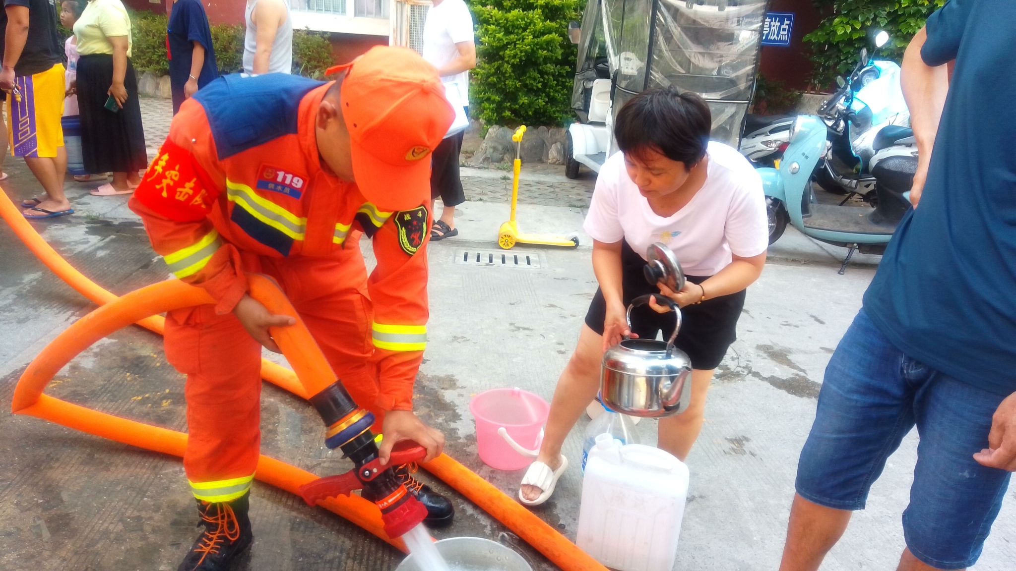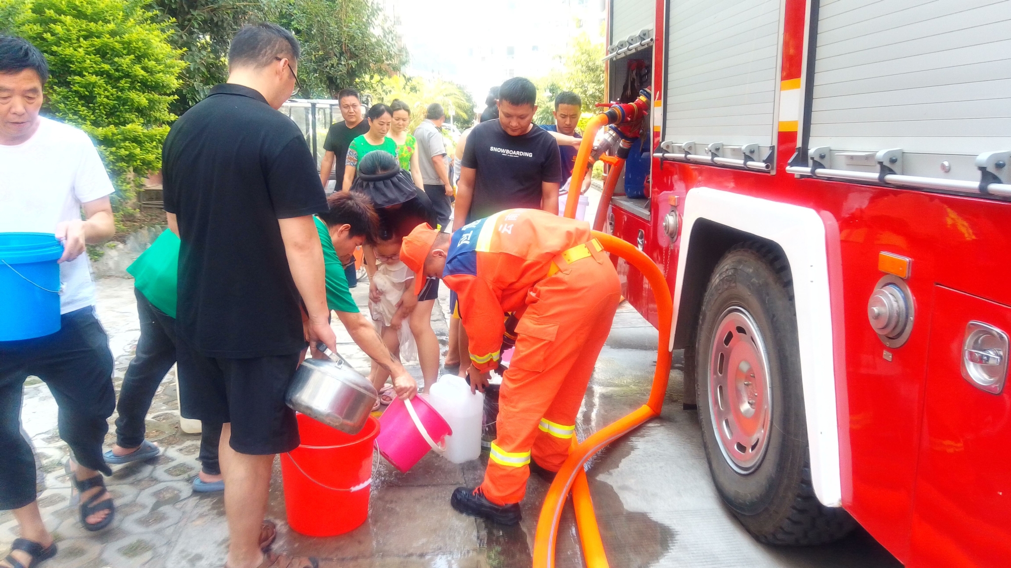 6月3日上午10点,消防车驶进泸水市六库街道江西社区交通小区,提前接到通知的小区居民早已拿着水桶等候。消防员迅速拿出水带、安装接口,把一股股清澈的水流注入每个水桶中。“谢谢了!你们辛苦了,这下有水喝了,真是太及时了!”小区居民陈韵好不停地说着感谢的话。