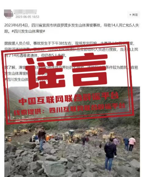 谣言:四川宜宾珙县近日发生一起山体塌方事故,造成多人死亡、失联?