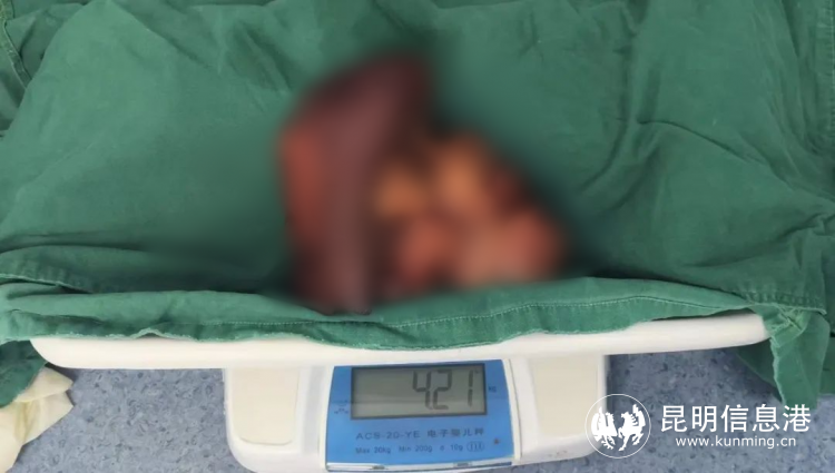 昆明信息港讯 记者曹芸 6月8日,记者从云南省第三人民医院获悉,该院成功为一名患者实施了涉多处重要血管及四个肝门的肝巨大肿瘤切除手术,切下来的肿瘤重达4.21公斤。目前,患者恢复良好。