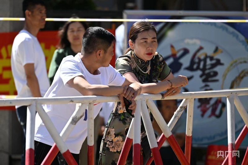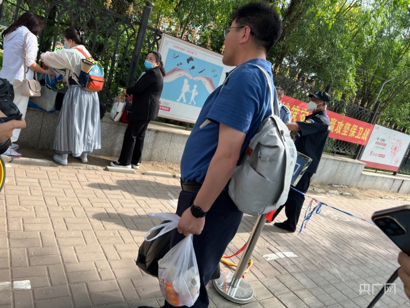 6月8日下午,等待考试铃声结束的家长,表情并不轻松(央广网发 郭亮 摄)