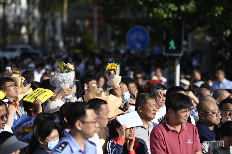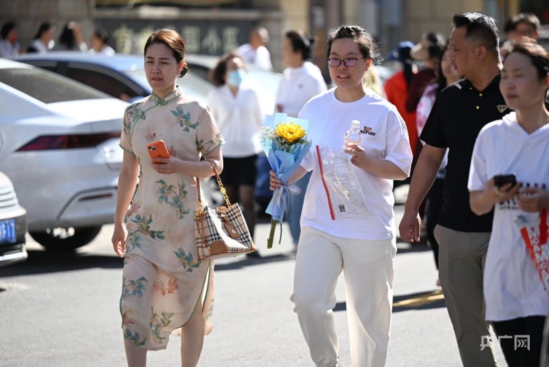 最后一科散场后,如释重负的考生和家长(央广网发 郭亮 摄)