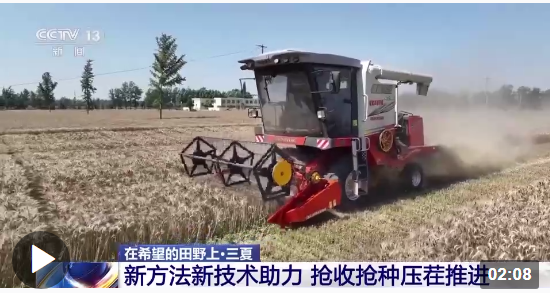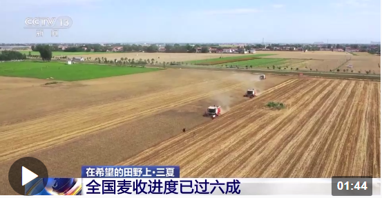 眼下,河南省麦收进度已过九成。记者在河南省兰考县麦收现场看到,收割机收麦,打捆机打捆秸秆、运走,紧接着,大型播种机播种玉米,整个过程一气呵成。