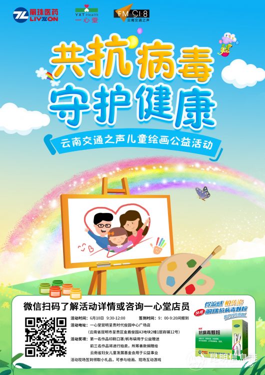 昆明信息港讯 记者曹芸 由电台FM91.8交通之声联合云南省妇女儿童发展基金会发起,一心堂药业和丽珠医药共同主办的“共抗病毒 守护健康”儿童公益绘画活动持续进行中。6月10日上午,一心堂昆明呈贡时代俊园中心广场店迎来了“共抗病毒 守护健康”儿童公益绘画路演的第三场。