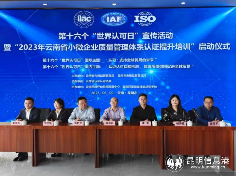 昆明信息港讯 记者李红鸾 6月9日上午,第十六个“世界认可日”宣传活动暨“2023年云南省小微企业质量管理体系认证提升培训”在昆明举行。本次活动以“认证认可检验检测:传递质量信任,服务绿色发展”为主题,通过线上线下、主分会场相结合的形式举行。