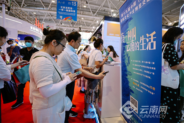 6月9日,第十九届中国(深圳)国际文化产业博览会开展第三日,中外观展游客走入云南展馆,以“一天”为时间轴,领略云南的大不同,体验“有一种叫云南的生活”。