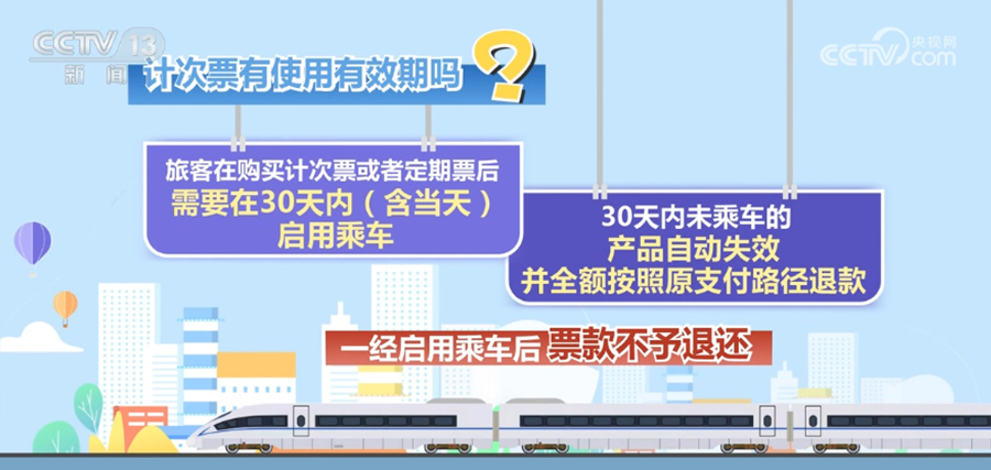 旅客在购买计次票或者定期票后,需要在30天内(含当天)启用乘车,30天内未乘车的,产品自动失效并全额按照原支付路径退款。一经启用乘车后,票款不予退还。