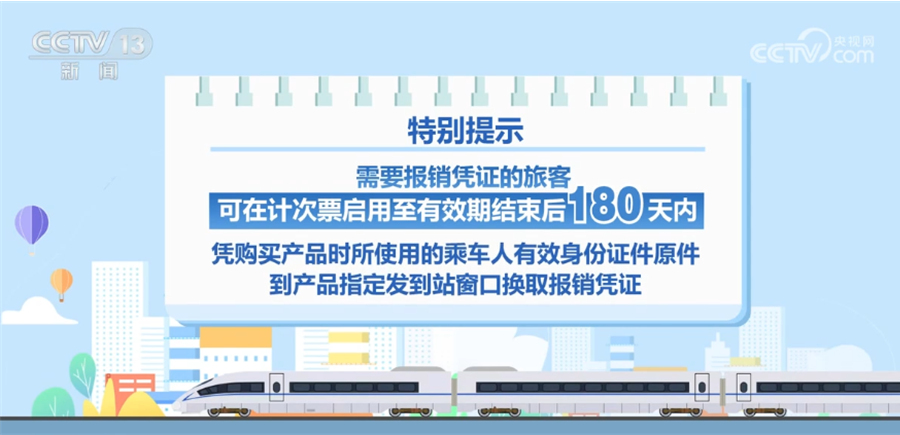 特别提示,需要报销凭证的旅客可在计次票启用至有效期结束后180天内,凭购买产品时所使用的乘车人有效身份证件原件,到产品指定发到站窗口换取报销凭证。