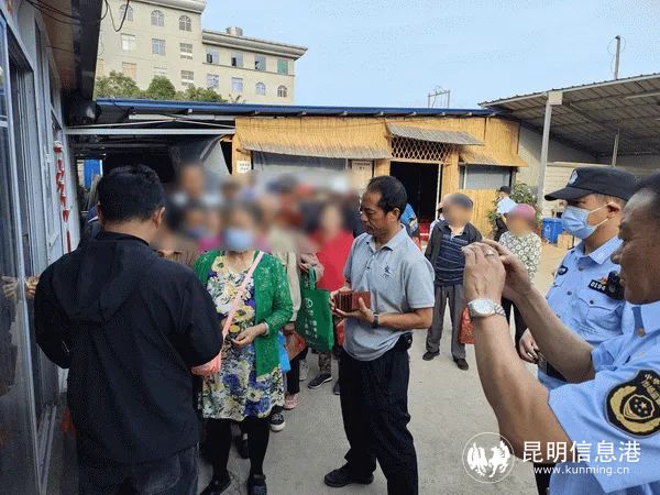 民警在现场查获组织者董某昌(男,46岁,曲靖会泽人)、刘某芬(女,44岁,曲靖会泽人)夫妻二人及及两名工作人员。现场共有200多名老年人,其中58名老年人以300元/瓶的价格购买了该品牌保健酒。经执法人员向群众宣传养老诈骗法律知识后,群众纷纷退款。