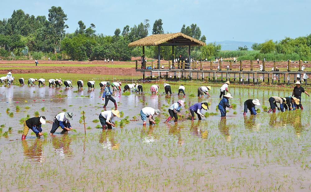 晋宁沙堤村举行千人插秧活动