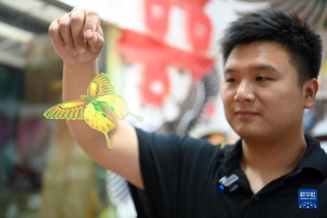 出身风筝世家的魏博文大学毕业后,回到家乡跟随父亲魏国秋“入行”做风筝。他从自己有所基础的绘画着手,发挥年轻人的创新优势,在风筝设计上屡屡出新,不仅与一些游戏公司合作推出风筝联名款,还推动风筝制作技艺的改进创新,设计了适合在室内放飞的迷你风筝。