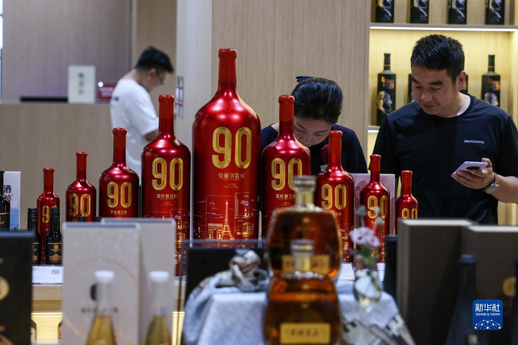 6月12日,游客在张裕酒文化博物馆内选购葡萄酒。