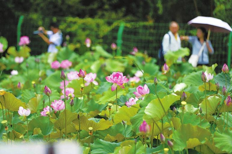 近日,昆明市呈贡区江尾村的荷花已盛开,吸引了众多市民前去观赏。