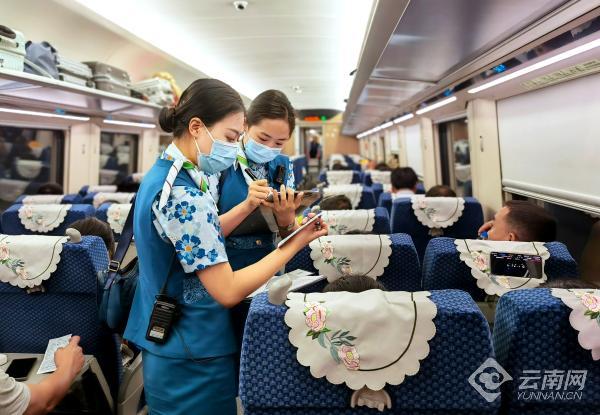 “列车上备有足够的出入境卡,便于旅客在填错时能够及时更换,乘务人员也会指导填写,对于老年旅客或者使用手机不太顺畅的旅客,我们会帮着完成出入境申报,让他们的出行体验更加便捷、温馨。”中老铁路国际旅客列车乘务指导兼列车长代蕊说。