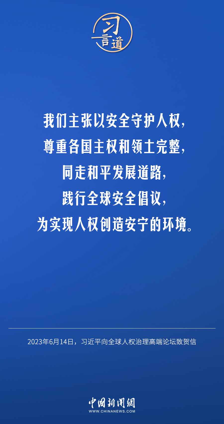 6月14日,国家主席习近平向全球人权治理高端论坛致贺信。他指出——